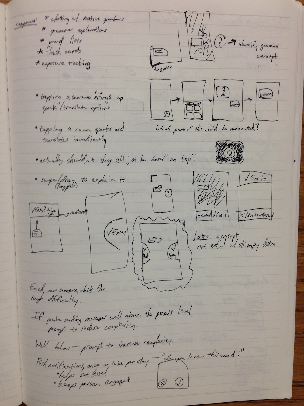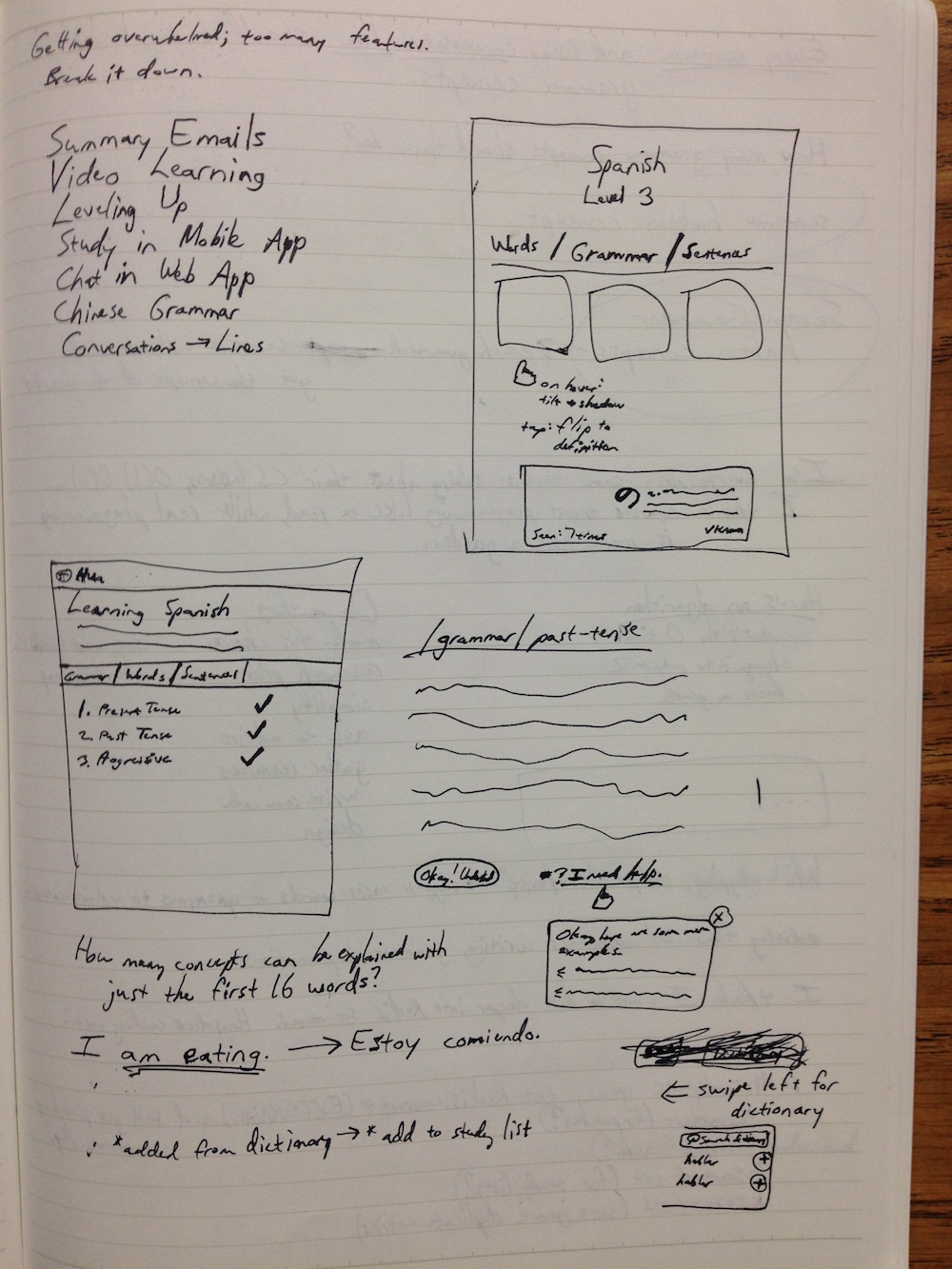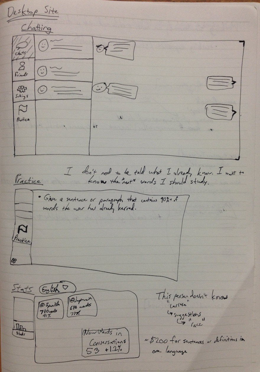 I had lots of ideas for how I wanted this to work. It was challenging to prioritize features that could be valuable enough for a small community of learners, yet viable enough to build as a side project. I ran a small test by contacting English learners in Taiwan, and showing my prototypes to language meetup attendees in San Francisco.