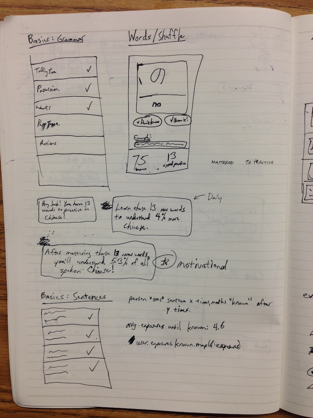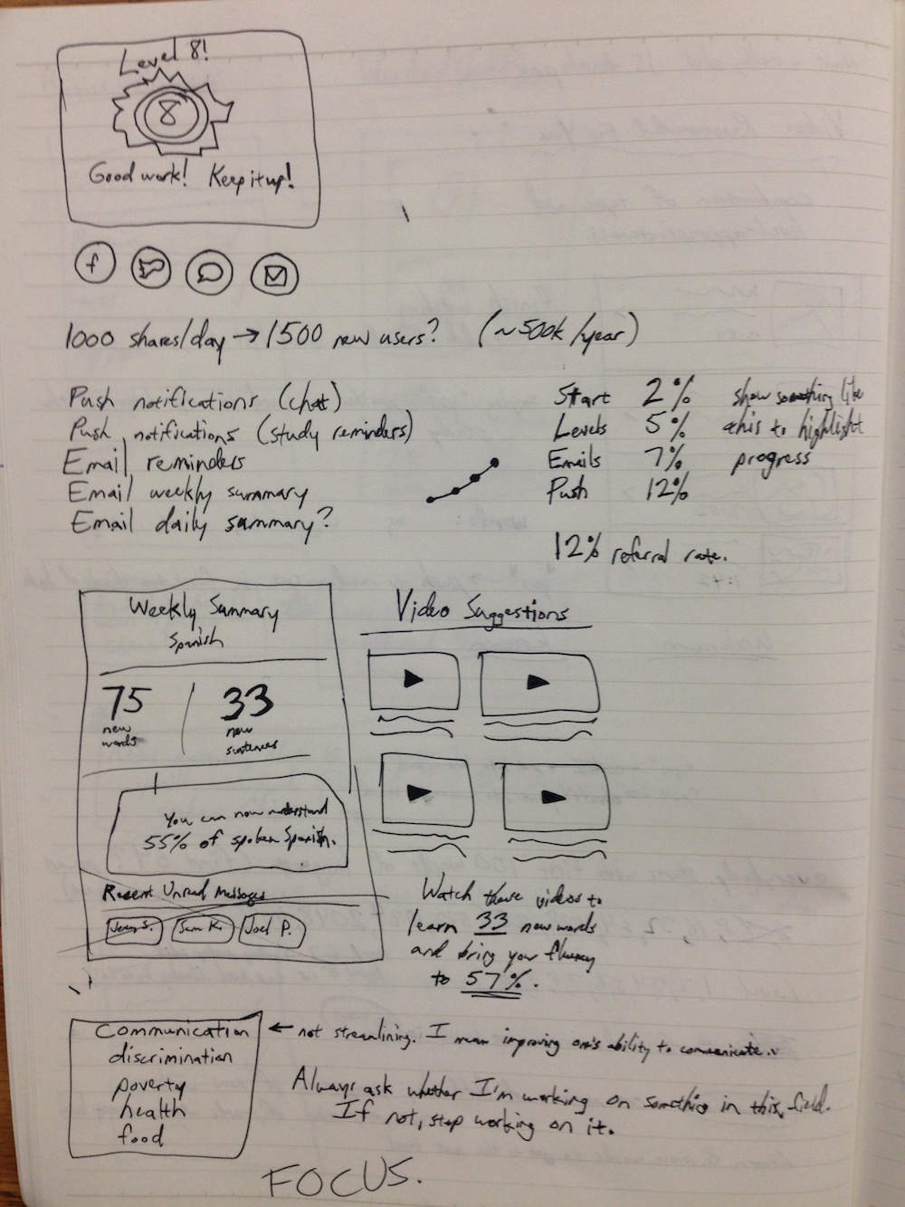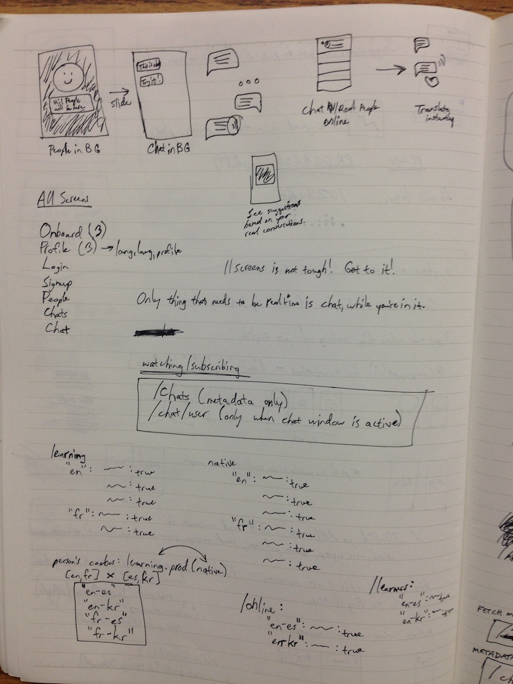 I had lots of ideas for how I wanted this to work. It was challenging to prioritize features that could be valuable enough for a small community of learners, yet viable enough to build as a side project. I ran a small test by contacting English learners in Taiwan, and showing my prototypes to language meetup attendees in San Francisco.