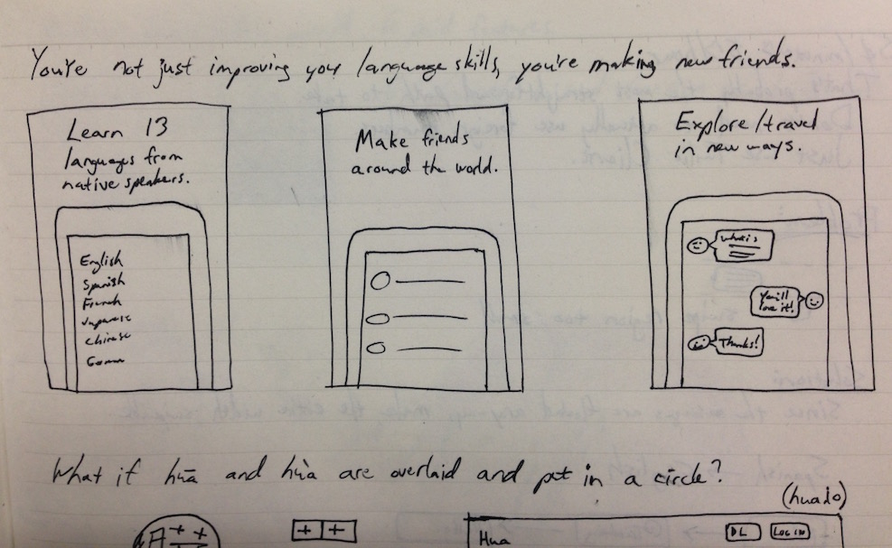I wanted to make Huà (話 words, language) friendly and approachable. I used the top of the Chinese character 花 (huā, flower) make an H for the logo. It reminds me of a helipad, hospital signage, or a tap dancer.